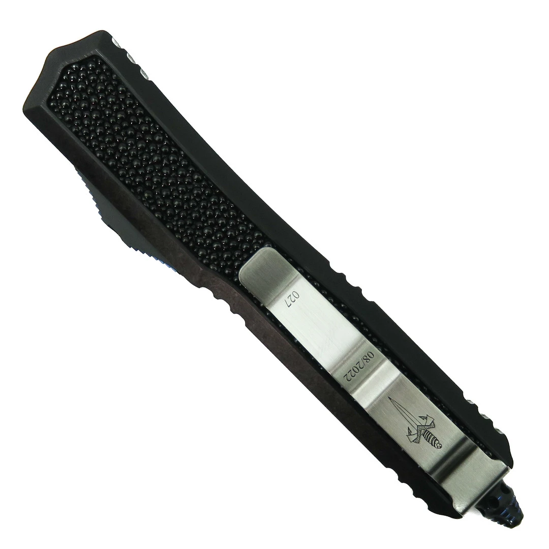 This Marfione Custom Knives Makor OTF Knife features an M390 polished satin finished blade.