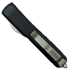 The Ultratech without question has been Microtech’s flagship out the front auto knife since its induction in 1999. Recently it has gone through an additional aesthetic redesign after the overwhelming success and praise of the traditional styling. While the dimensions of the Ultratech remain unchanged, the handle has been stripped back down to its original roots–now offering a smooth contoured chassis, however still boasting the tri-angle hardware, a redesigned thumb slide and the glass breaker that now includes a press fitted ball bearing for a more comfortable, but still functional, user experience. Each Microtech OTF knife has extremely sophisticated internal mechanisms which improve the overall operational functionality and reliability. This model features a contoured black handle complete with standard bead blasted hardware and an integrated glass breaker function along with a partially serrated bayonet style blade in a satin finish. Made in the USA.