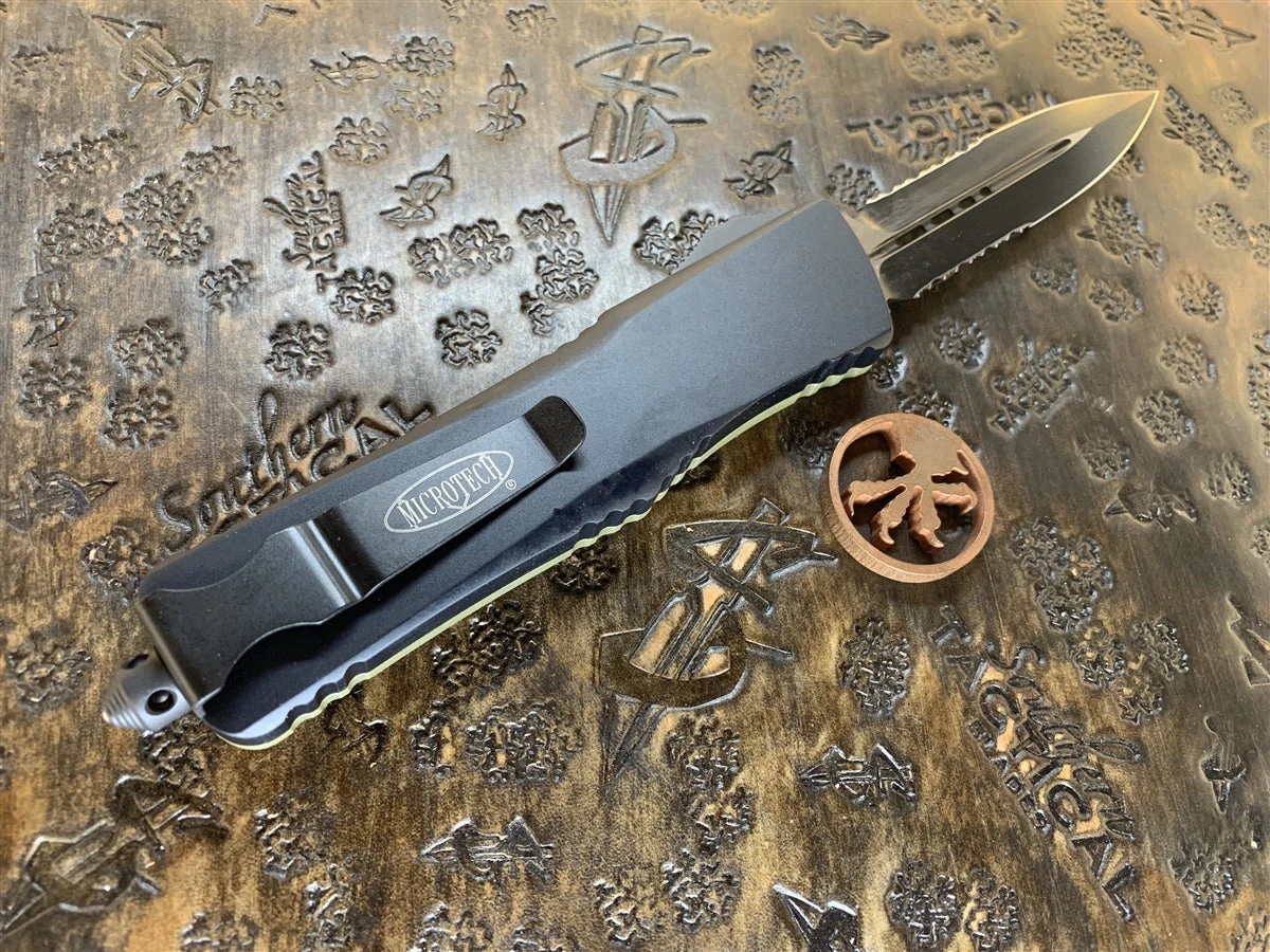 Microtech Combat Troodon Double Edge Part Serrated G10 OD Green