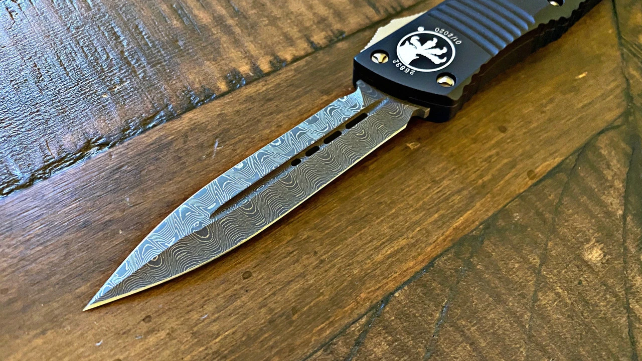 This Signature Series configuration features a black chassis with bronzed hardware throughout, all finished off by a beautiful double edge Damascus blade.