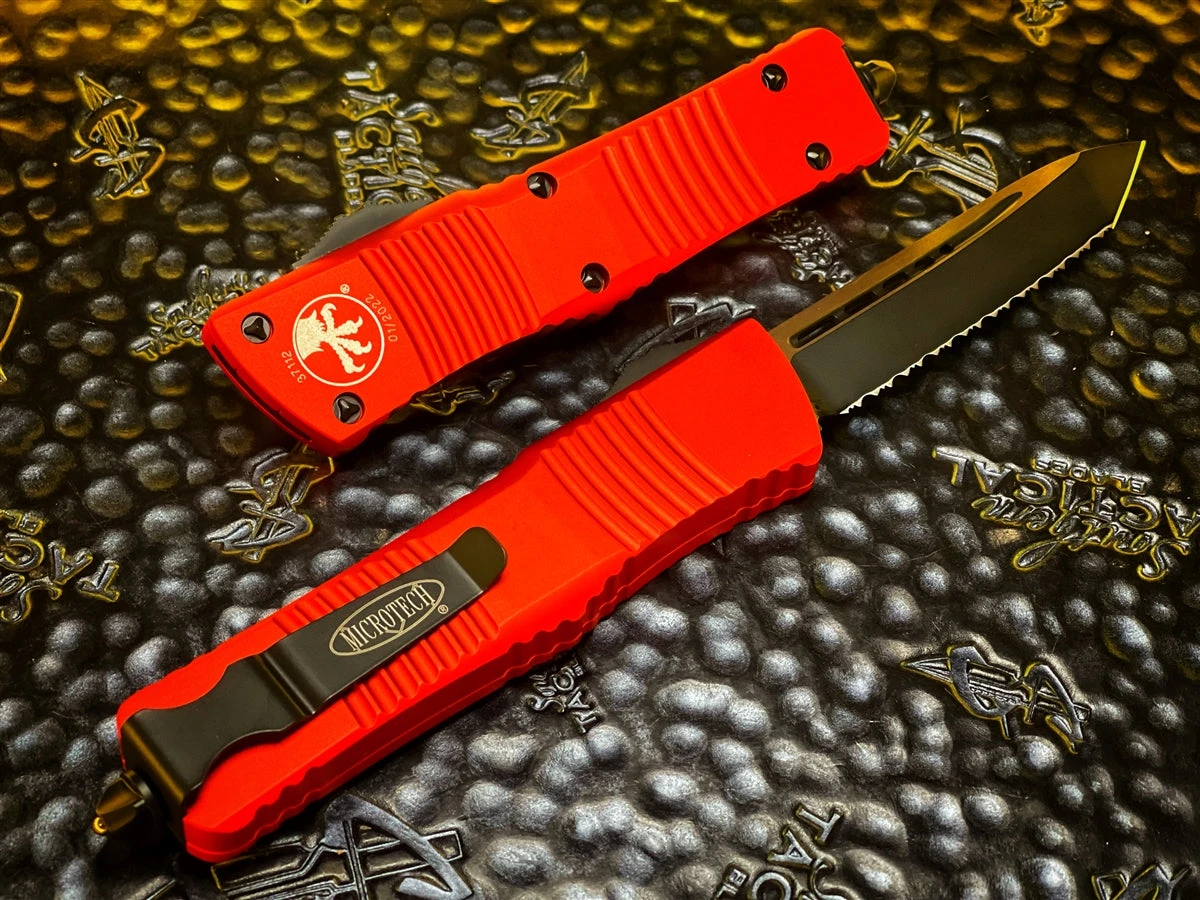 Microtech Combat Troodon Tanto Full Serrated Red 144-3RD