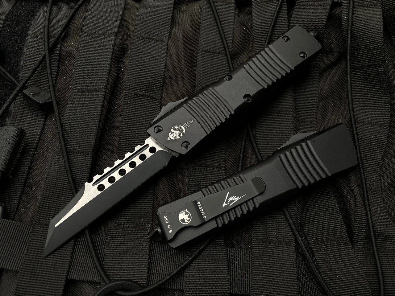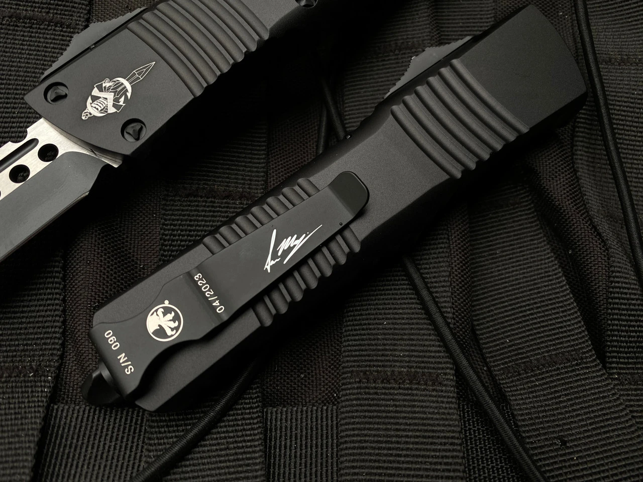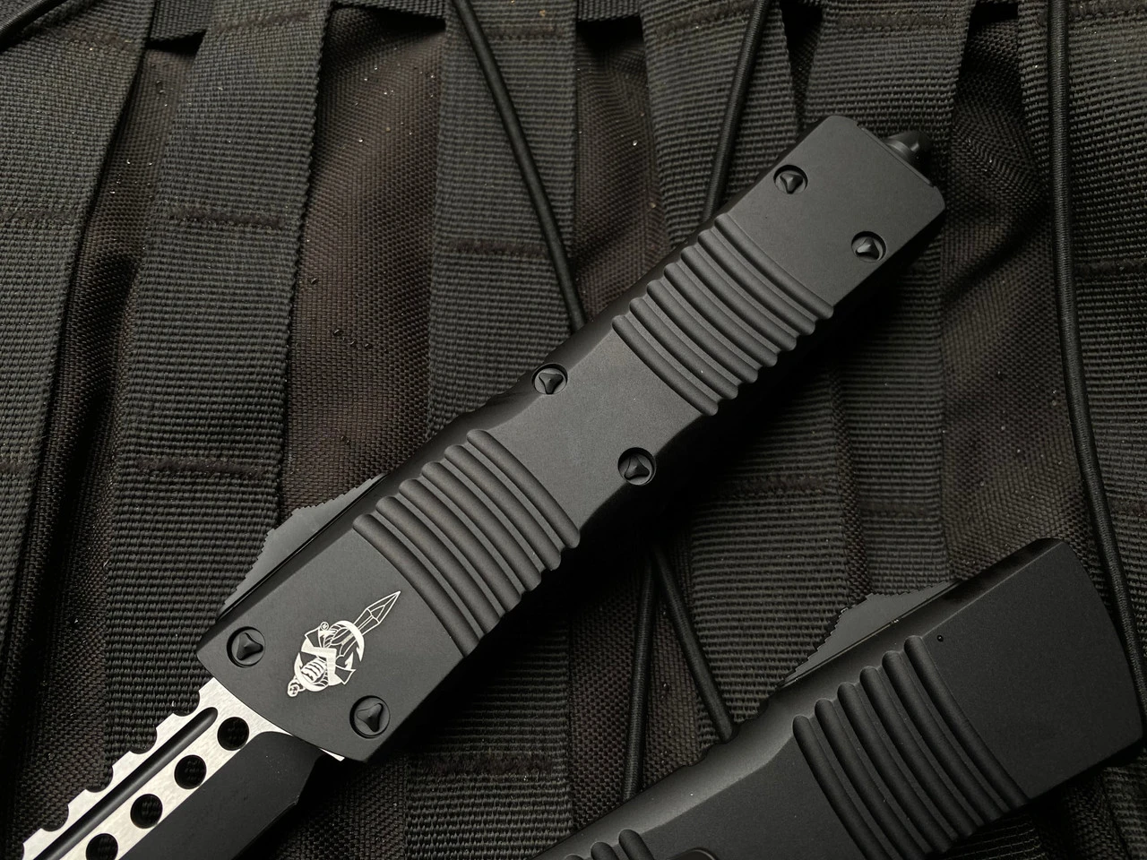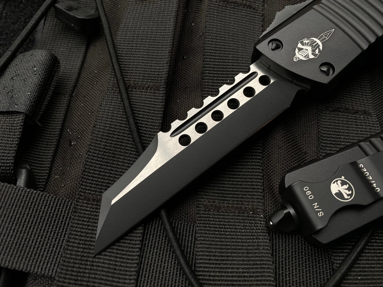 Microtech Combat Troodon Warhound Black Tactical Aluminum Body W/ Two Tone Black Plain Edge Blade (3.75″) 219W-1TS