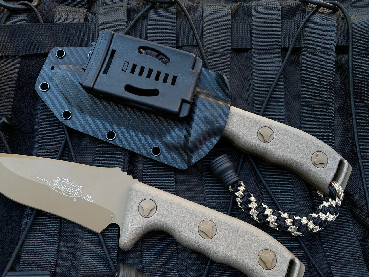 Microtech Currahee S/E Fixed Blade Full FDE Scales W/ FDE Drop Point Plain Edge Blade (4.75”) 102-1TA