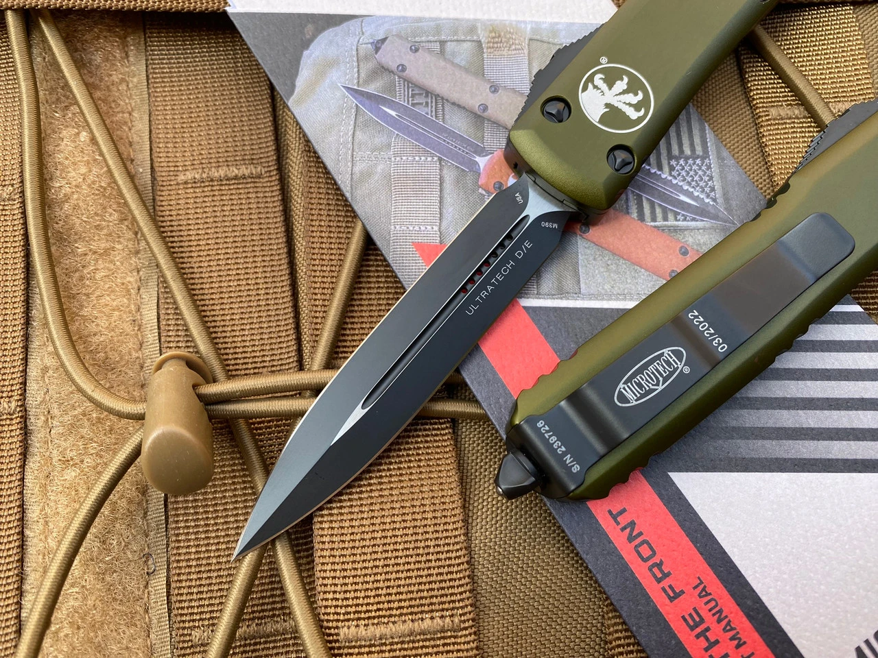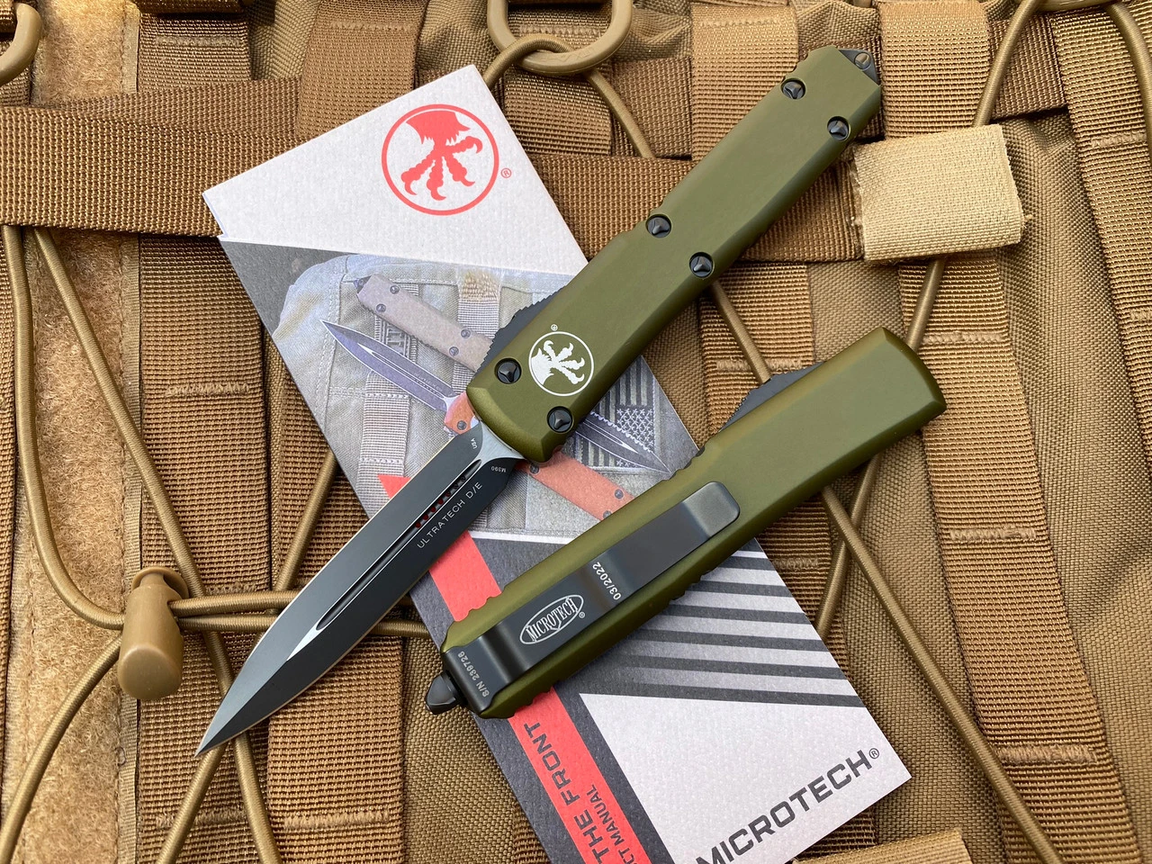 Microtech D/E OD Green Aluminum Body W/ Black Plain Edge Blade (3.4″) 122-1OD