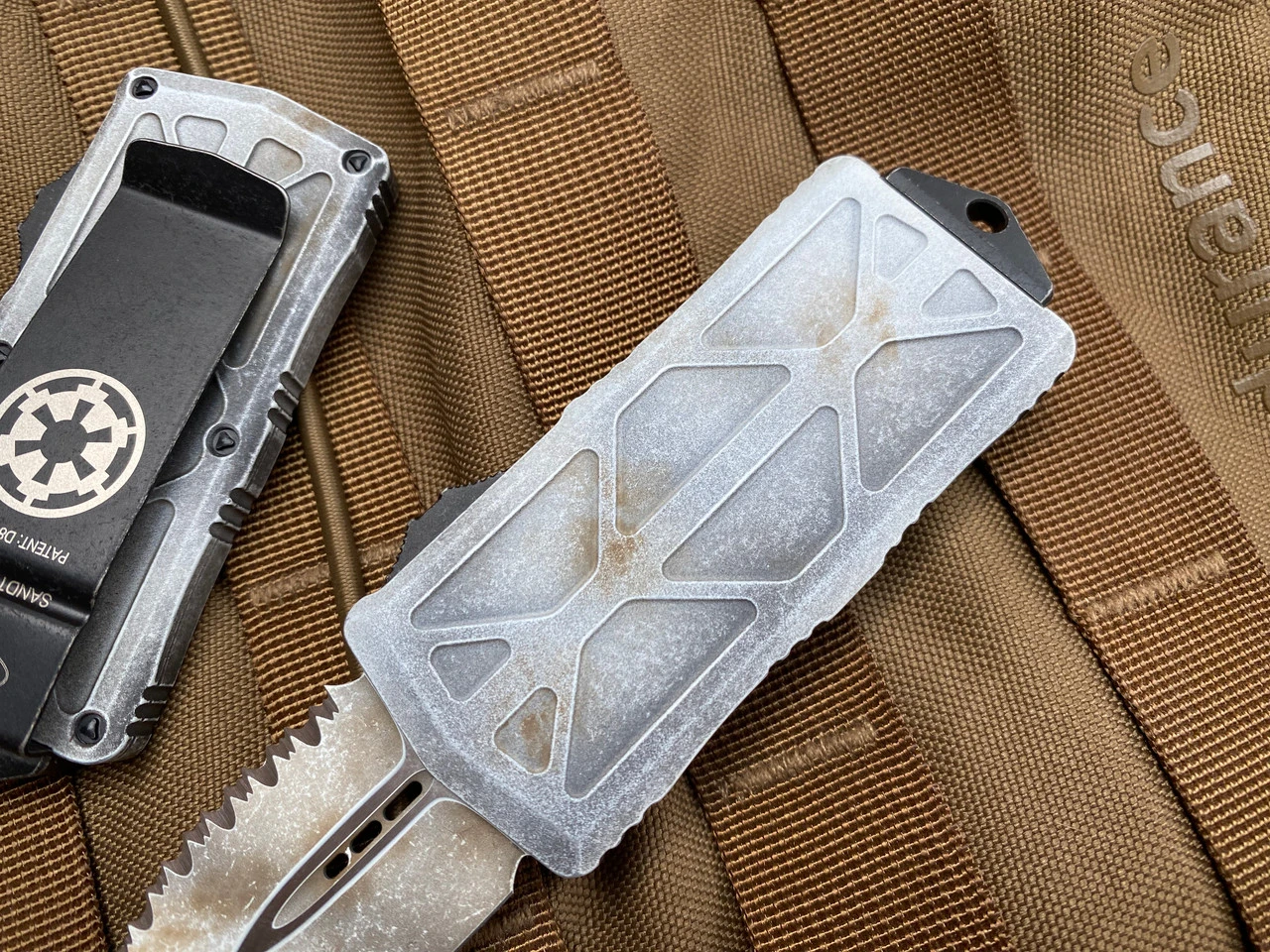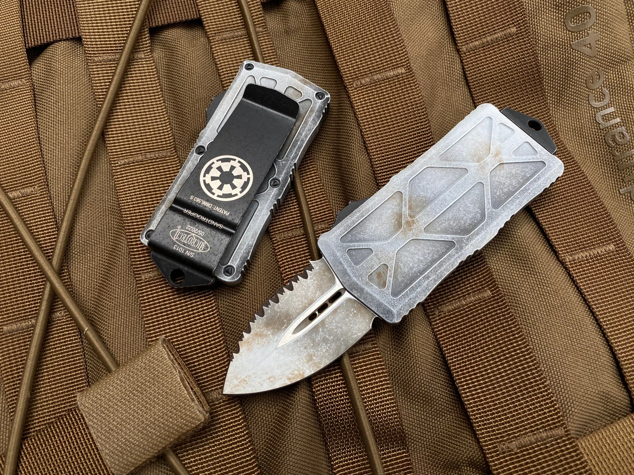 Microtech Combat Troodon D/E Blue Aluminum Body W/ Stonewashed Full Serrated Blade (3.81”) 142-12BL