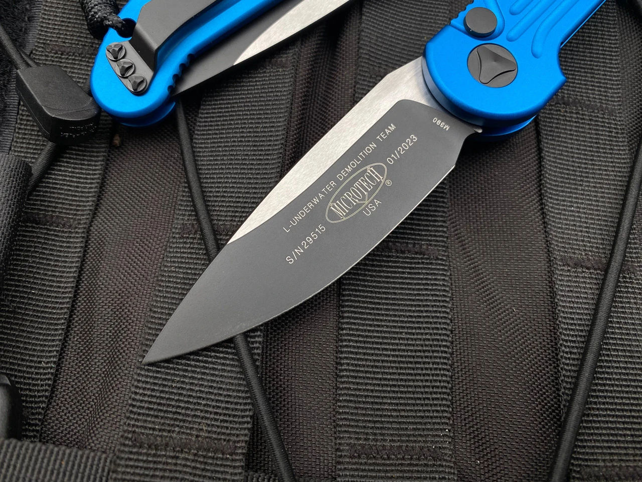 Microtech LUDT Auto Folder Blue Aluminum Body W/ Black Plain Edge Blade (3.375”) 135-1BL