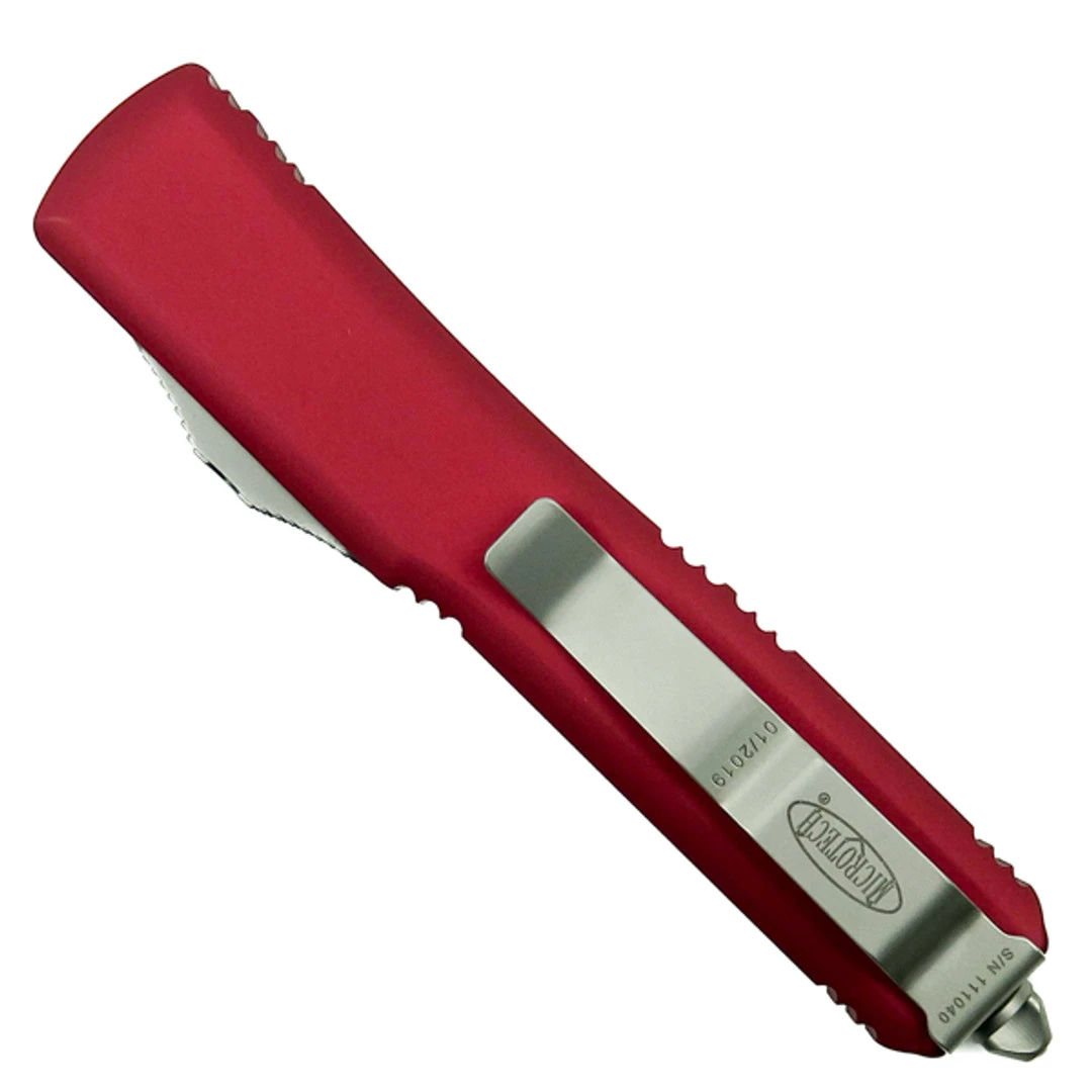 The Ultratech without question has been Microtech’s flagship out the front auto knife since its induction in 1999. Recently it has gone through an additional aesthetic redesign after the overwhelming success and praise of the traditional styling. While the dimensions of the Ultratech remain unchanged, the handle has been stripped back down to its original roots–now offering a smooth contoured chassis, however still boasting the tri-angle hardware, a redesigned thumb slide and the glass breaker that now includes a press fitted ball bearing for a more comfortable, but still functional, user experience. Each Microtech OTF knife has extremely sophisticated internal mechanisms which improve the overall operational functionality and reliability. This model features a contoured red anodized handle complete with standard bead blasted hardware and an integrated glass breaker function along with a dagger style blade in a satin finish. Made in the USA.