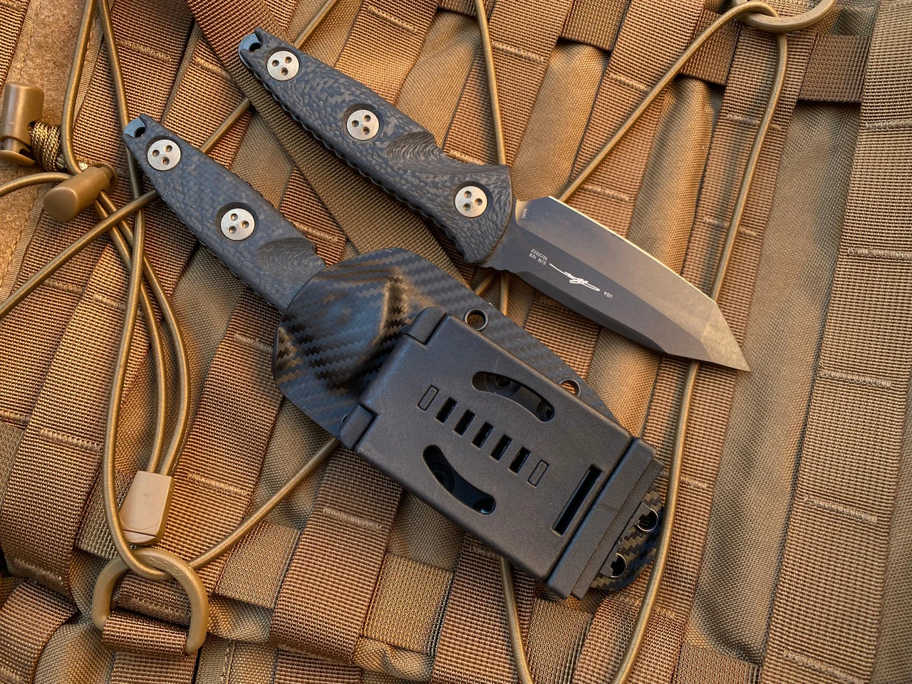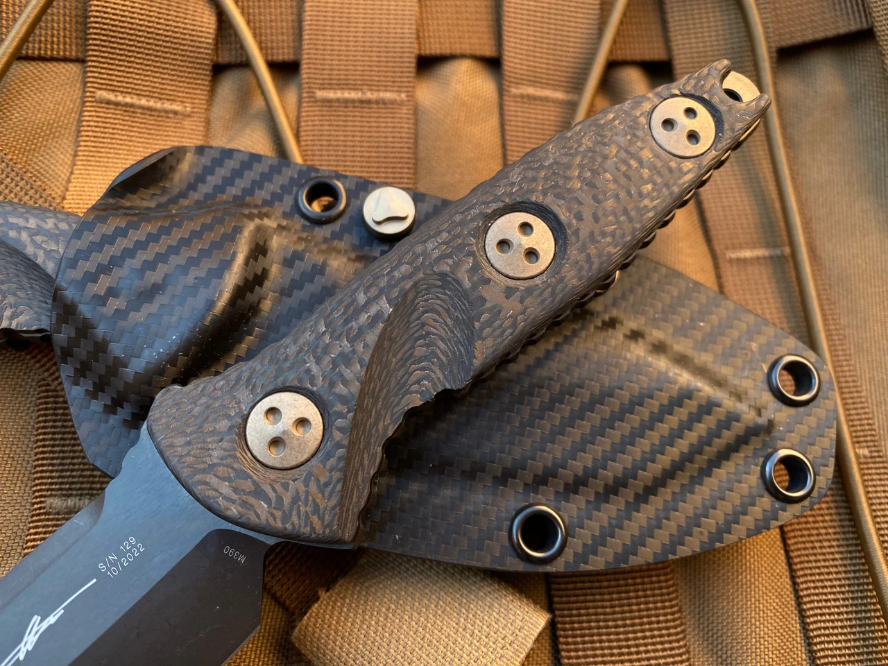 Microtech Socom Alpha Mini T/E Carbon Fiber Scales W/ Bronzed Hardware And DLC Plain Edge Blade (3.75”) 114M-1DLCCFS
