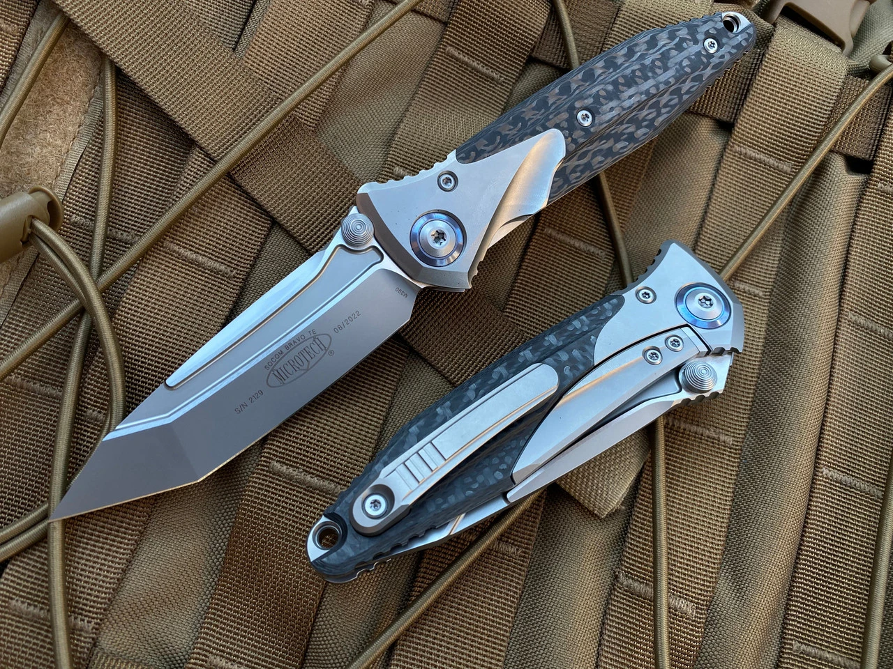 Microtech Socom Bravo Manual Folder Bead Blast Titanium W/ Carbon Fiber Inlay And T/E Plain Edge Blade 261-7CFTI