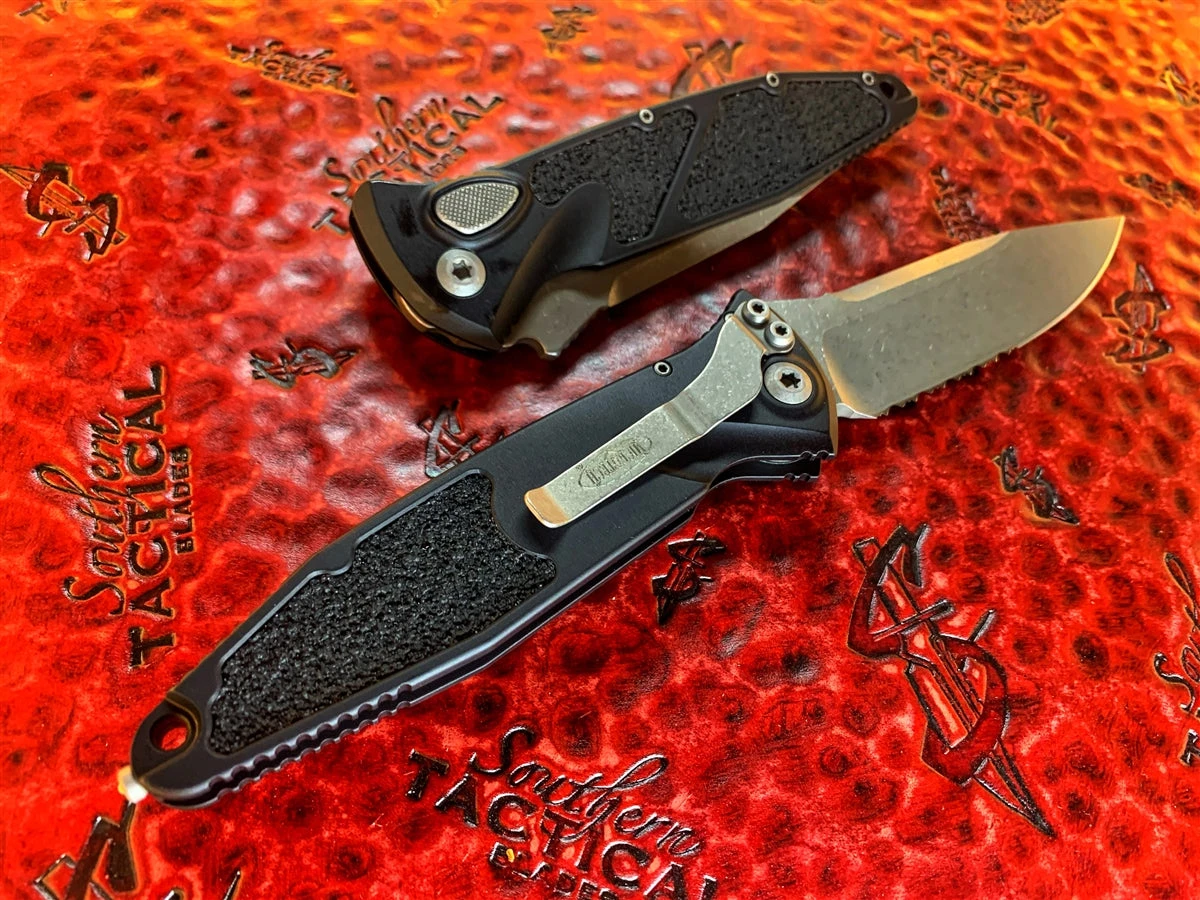 Microtech Socom Elite Auto Single Edge Apocalyptic Part Serrated 160A-11AP