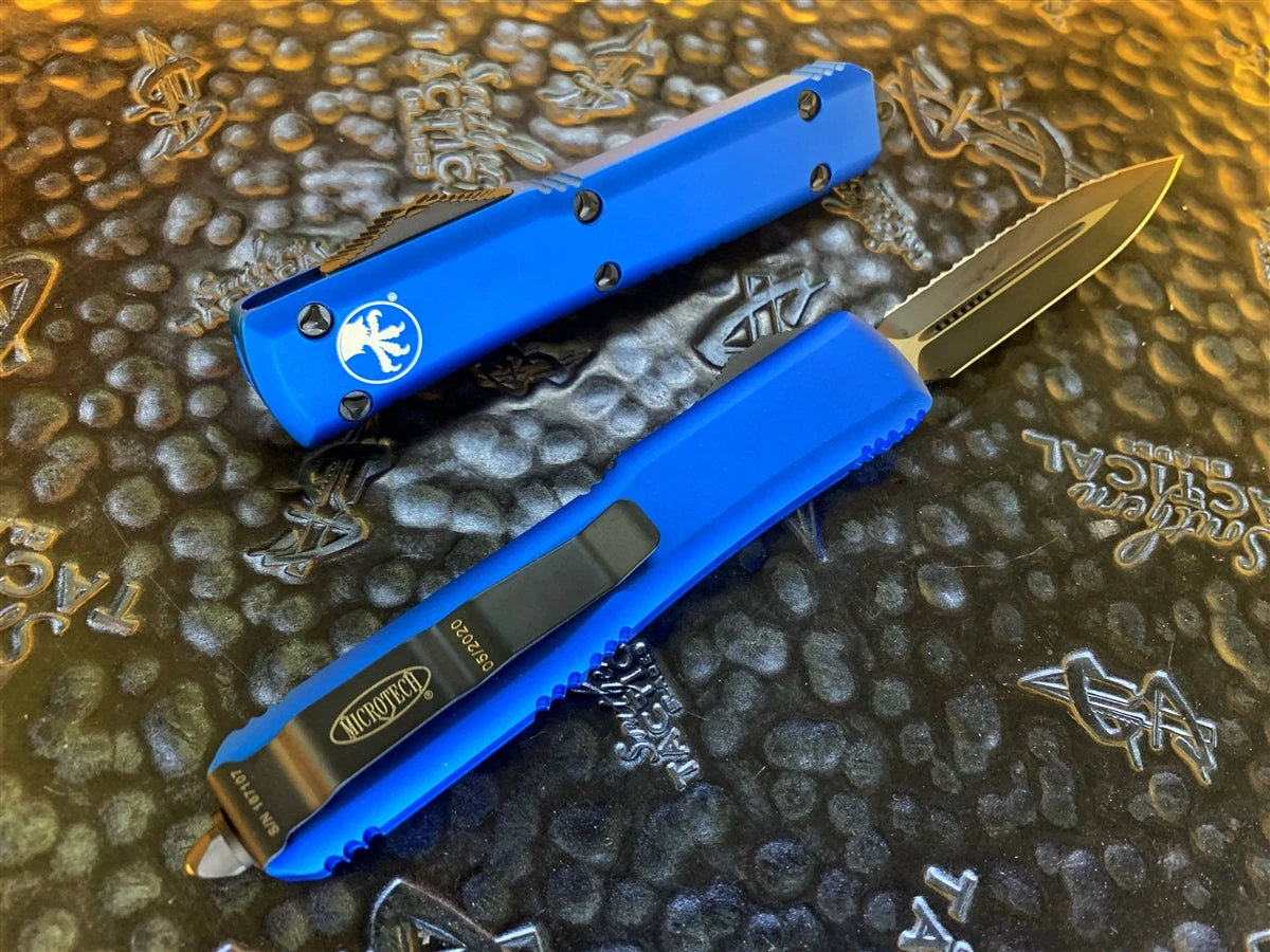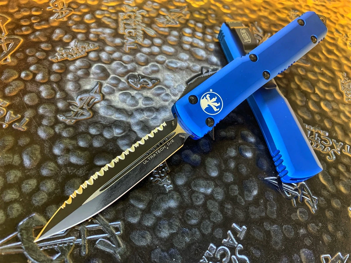 Microtech Ultratech Double Edge Full Serrated Blue 122-3BL