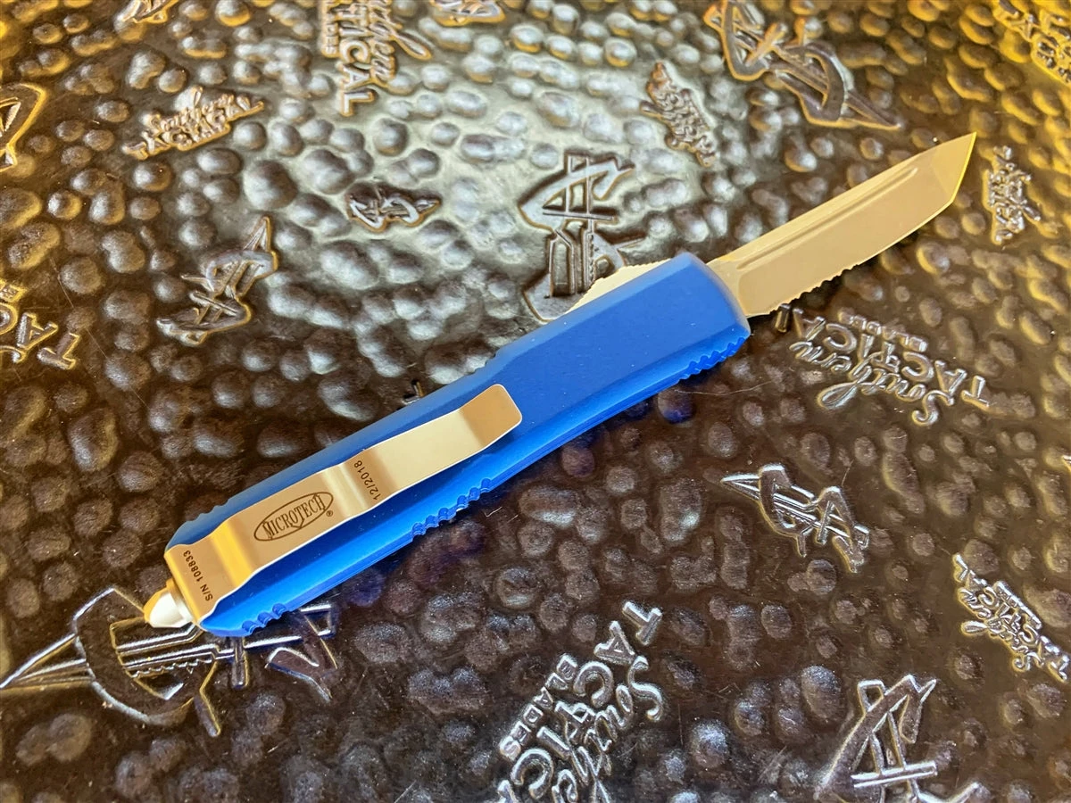 Microtech Ultratech Tanto Part Serrated Apocalyptic Blue