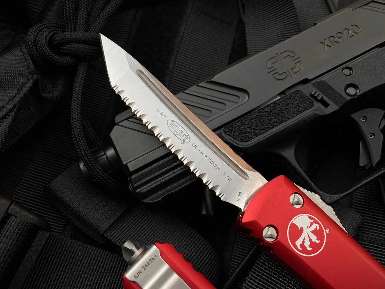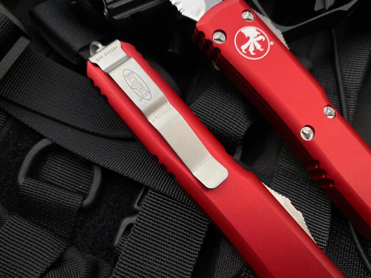 Microtech Ultratechs T/E Red Satin Full Serrated 123-6RD