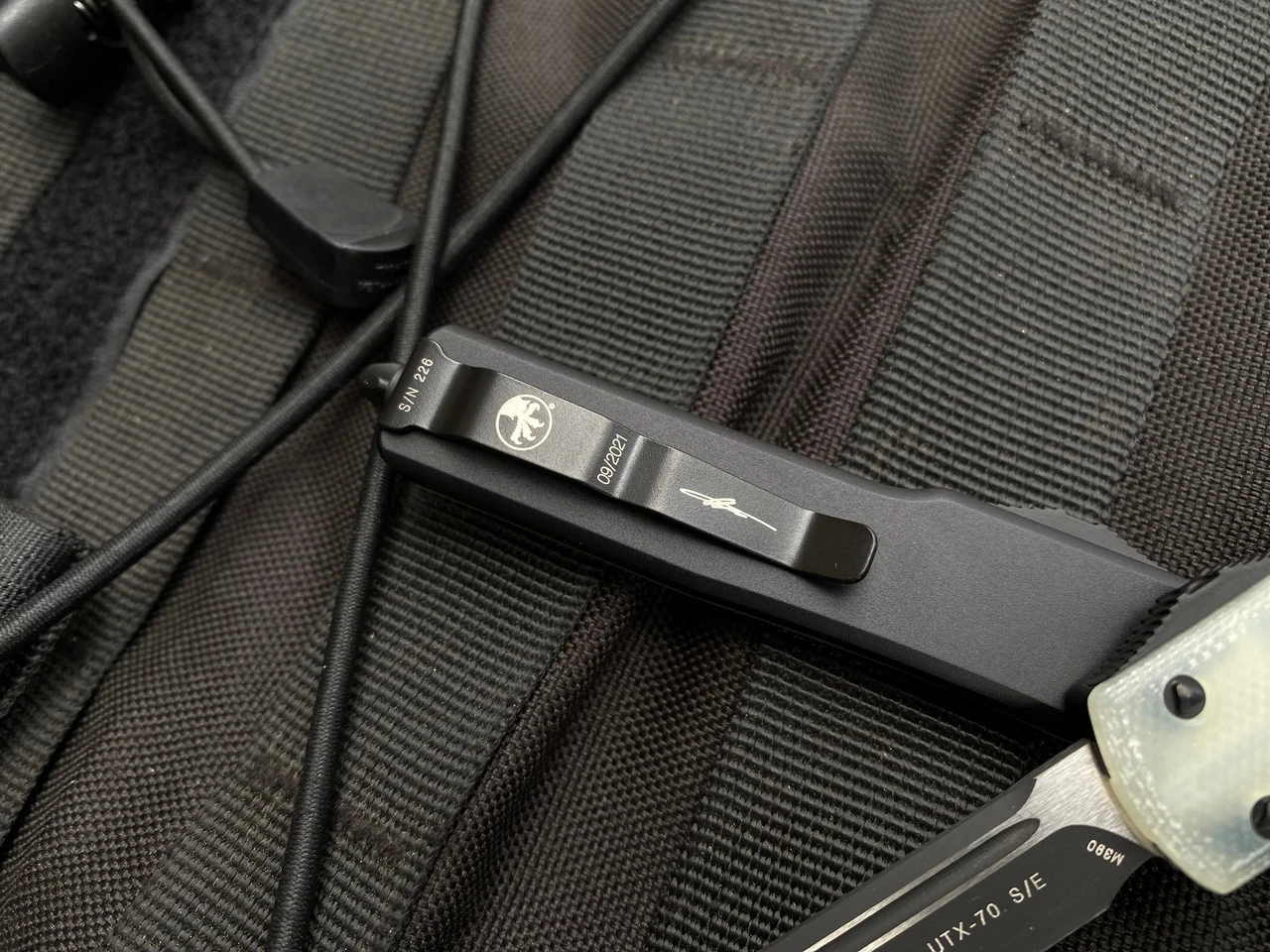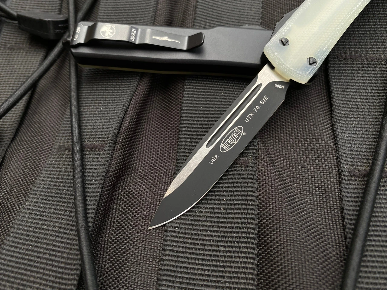 Microtech UTX-70 S/E Jade G-10 Top W/ Black Plain Edge Blade (2.42″) 148-1GTJGS