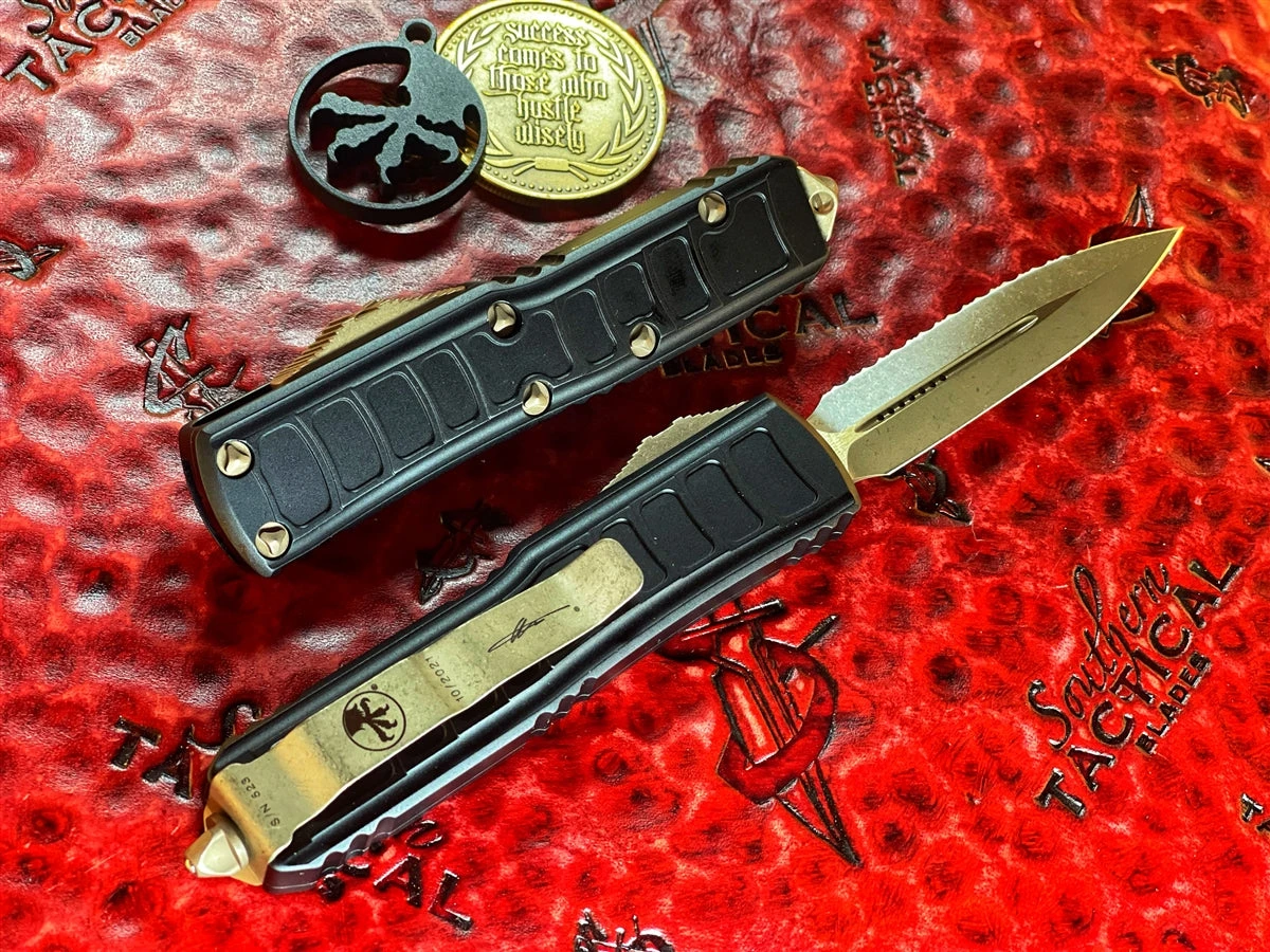 Microtech UTX85 II Stepside Double Edge Bronzed Full Serrated Signature Series 232II-15S