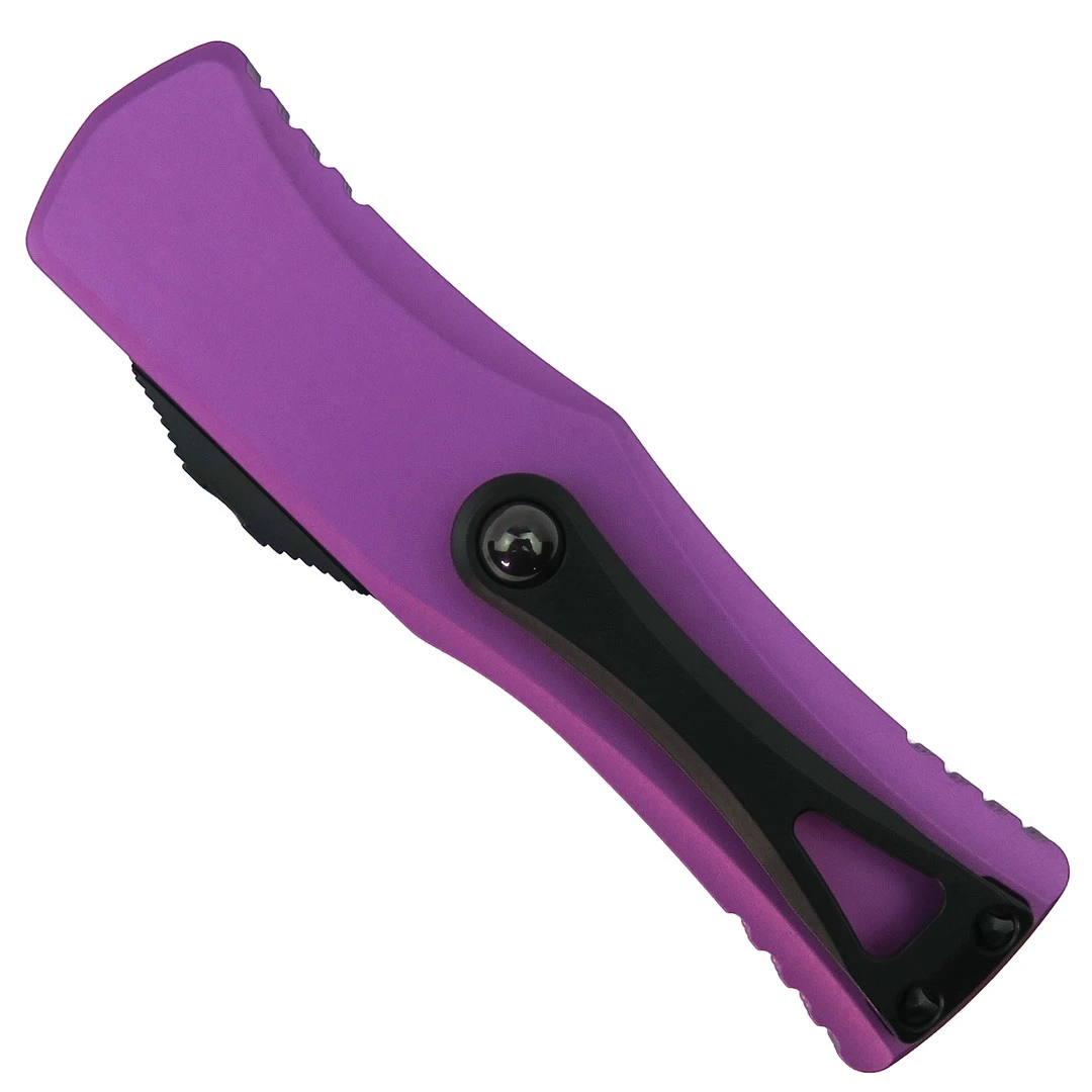 The Microtech Violet Hera OTF is a tactical knife with a beautiful, ergonomic design. This knife features a dagger blade which is fully serrated on one side and plain on the other, providing you with a variety of cutting abilities. The blade is paired up with a violet anodized aluminum handle.