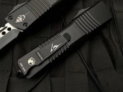 Microtech Dirac Distressed Blue Aluminum Body W/ Atonewashed Plain Edge Blade (2.92”) 225-10DBL