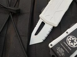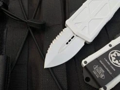 Microtech Exocet Stormtrooper D/E White Aluminum Body W/ White Full Serrated Blade (1.9β) 157-3ST