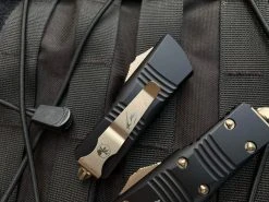 Microtech Mini Troodon Hellhound Black Aluminum Body W/ Bronzed Plain Edge Blade (1.99″) 819-13S
