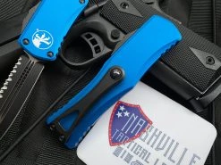 Microtech Dirac Distressed Blue Aluminum Body W/ Atonewashed Plain Edge Blade (2.92”) 225-10DBL