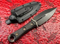 Microtech X Borka SBK S/E Carbon Fiber Handle W/ DLC Black Plain Edge Blade (5”) 200-1DLCCFS